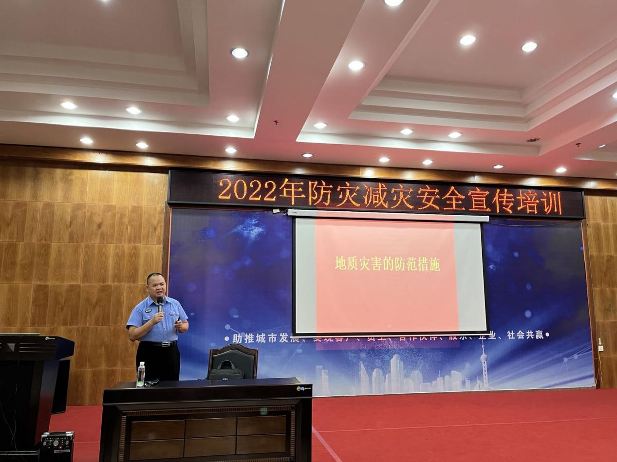 为贯彻落实全国第21个“安全生产月”活动,并进一步宣传普及防灾减灾科安全知识普以及相关法律法规,提高广大员工的防灾减灾意识和自救互救能力, 提高生产安全事故的快速反应能力。7月8日,工程公司组织开展防灾减灾知识宣传培训活动,邀请了广西壮族自治区应安应急安全宣传中心谭毅讲师进行培训。市区域公司、物业公司、工程公司等公司领导及员工共计100余人参加此次宣传培训。