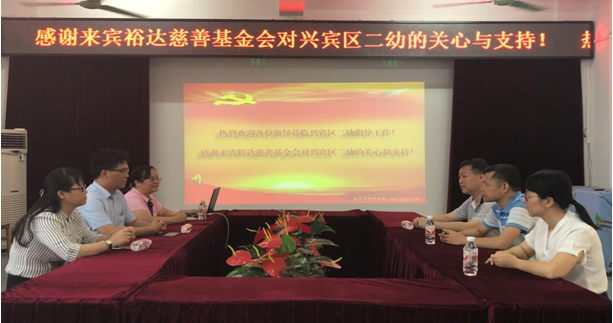 2018年6月6日上午,来宾市工商联合会携手来宾裕达慈善基金会,在来宾市第二幼儿园党支部办公室举办了爱心捐赠活动。来宾市工商联合会办公室主任卢干超、兴宾区教育局副局长韦燕、兴宾区区直工委书记左司阳、我集团副总裁梁锋、行政管理中心副总监兼总裁办主任罗桂平参加捐赠活动。