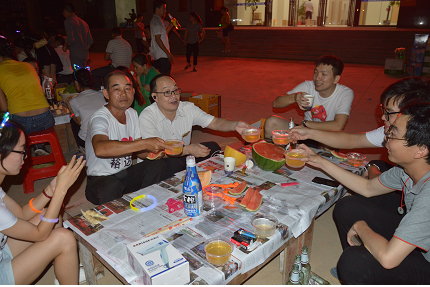9月20日晚上7点,武宣公司全体员员工及武宣酒店全体员工共计120余人在裕达集团写字楼门前欢聚一堂,共度活动欢乐时光,武宣公司董事长邓毅文、副总经理凌春亮、总经理助理熊祖文、招商总监郑恩镑及武宣酒店公司副总经理王鹏等领导出席了本次活动。