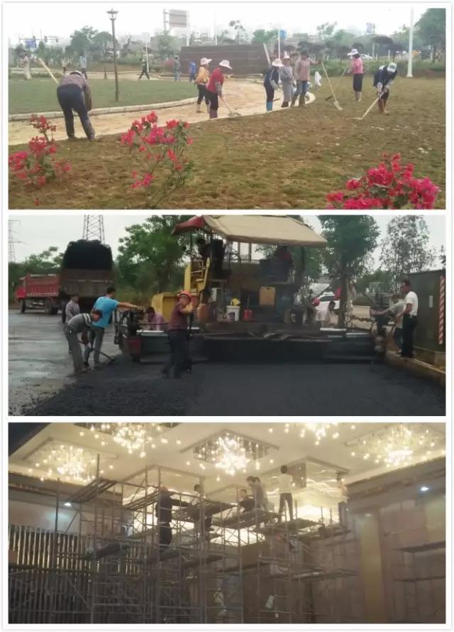 目前,展示中心已完成地面硬化及主体建设,绿化带铺设基本完成,完全实现通水通电,同时网络开通、电话安装等已进入调试阶段,现场已进入清理扫尾阶段,办公设备、厨房用具等配套设施也正在紧张有序的安排入场当中。