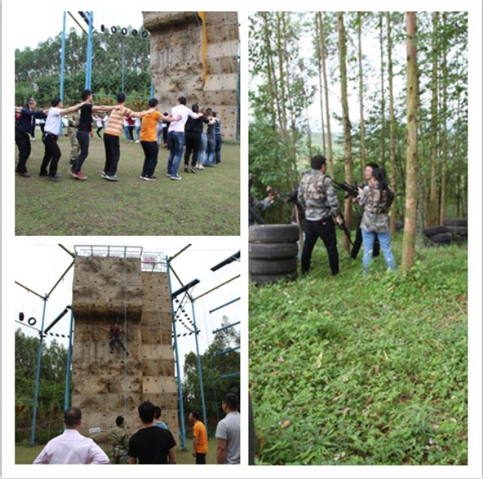 此次活动让员工们体会到了攀岩魅力、CS激烈场面和野炊乐趣。在攀岩墙上,攀岩者不惧艰难,奋力前行,获得攀岩现场的阵阵喝彩、卖力助威,更让现场的员工们个个都想自己亲自体验攀岩乐趣及挑战自我。在CS野战基地,大伙们穿上装备,拿起枪,分成两个小队,各自钻入树林,在复杂的丛林地形中你攻我守、“枪林弹雨”,上演了一场场激战。在战斗中,队员们都表现得非常积极,相互团结、互帮互助、协调合作,个人的潜能得到挖掘,应对困难的能力得到提升。在野炊现场,大家团结互助一起垒灶安锅、搬柴生火、洗盘洗菜、包饺煮面、蒸烹煎炒等等,不一会儿,炊烟袅袅,菜香四溢,大家品尝自己做的野火菜,吃得特别香也特别开心。
