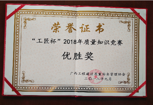 9月26—27日,由广西工程建设质量安全管理协会主办的“工匠杯”2018年质量知识竞赛在广西沃顿国际大酒店举行。欧宝ob官网登录入口(中国)有限公司喜获总分第四“优胜奖”。