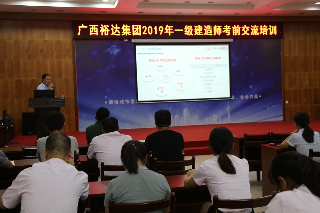 胡斌副总经理在建筑工程管理与实务专业方面有着丰富的备考经验。开篇引言讲述当前阶段国家以及集团关于考取一级建造师证件扶持的相关政策、制度,激励大家积极备考。紧接着分析近三年考题总结并分享各类题型的答题技巧及作答思路,涵盖了分值权重分析、案例分析、判断推理等方面;最后胡副总就如何做出合理性论断、如何结合材料多角度分析问题、如何运用材料内容做好题、得高分等技巧都做了具体的示范,学员们从中受益匪浅。