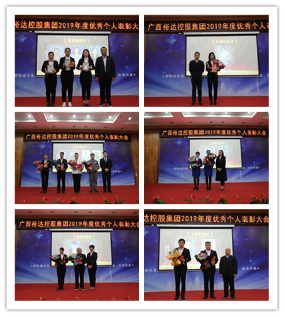 为表彰在2019年度工作中,勇于拼搏、敢于担当、业绩突出的优秀个人,以此弘扬榜样力量,鼓舞全体员工士气,集团人力资源部特组织开展广西裕达控股集团2019年度优秀个人表彰大会。本次大会到场的领导有:控股集团董事、副总裁覃其成、梁锋、乔景坤、韦延力,副总裁孟乃茂,执行副总裁李梦晓、总裁助理高绍举、陈妍妮、黄玲艳、何道军,地产集团副总裁蒋怀伟、范华珍,以及工程集团,金融集团部分高层领导,并担任颁奖嘉宾。参会人员主要有年度优秀个人、集团各中心、小贷公司、贸易公司全员及各子分公司控股中层以上管理人员。