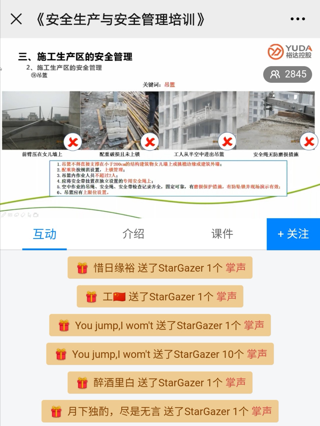 2020年6月是全国第19个“安全生产月”,6月10日晚,为了规范及提升安全文明及施工安全水平,提高安全意识,严防各类事故的发生,控股集团人力资源部举办了关于安全生产与安全管理的培训,普及安全生产知识。