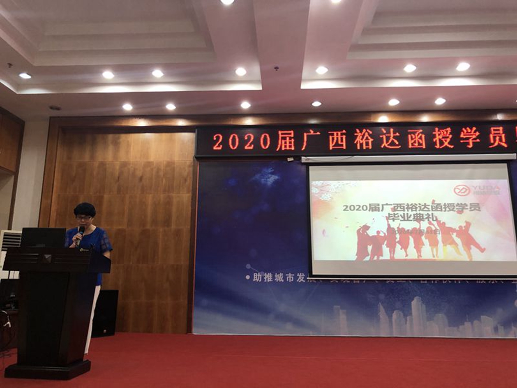 典礼伊始,陈妍妮女士代表裕达集团对2020届毕业的66名函授学员圆满完成学业表示诚挚祝贺,对他们克服重重困难,妥善解决工学矛盾的学习精神给予了充分肯定,并希望他们将学到的理论和知识运用到工作中去,从实际出发,大胆探索,勇于实践,不断实现自我增值。