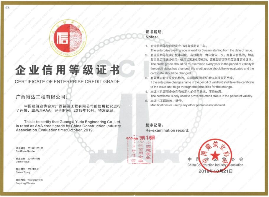 近日,公司顺利通过中国建筑业协会“全国建筑业AAA级信用企业”复审,公司再获“AAA级信用企业”荣誉称号。