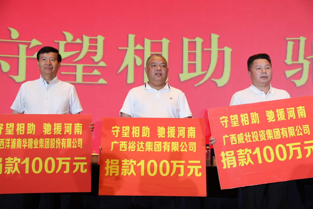 7月23日下午,“守望相助,驰援河南”捐款活动在百色饭店一楼国际会议中心举行,此次活动由自治区工商联主办,广西裕达集团有限公司等8家广西民营企业参与,我集团公司董事长兼总裁邓亚保代表参加。
