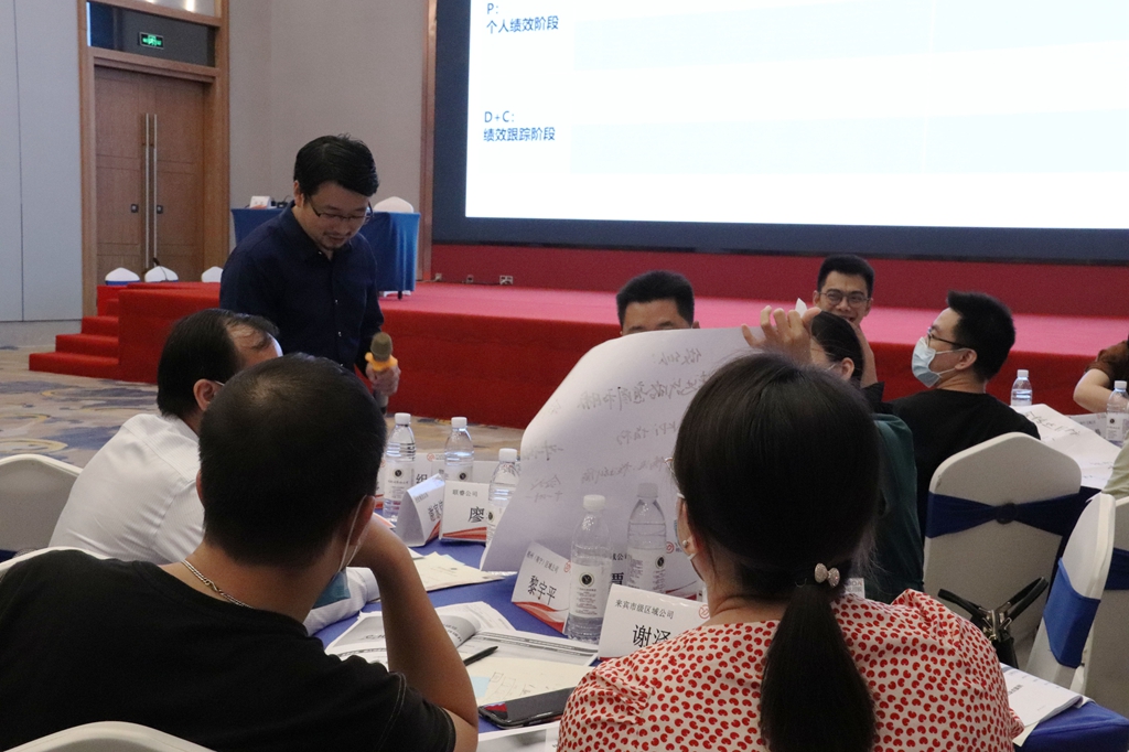 培训期间,何老师首先讲解了管理者的绩效管理意识,明确绩效管理的本质,强调绩效管理是需要全员参与的管理工具,只有认识统一了,才能确保绩效落地实施效果。其次从关键指标设定进行深入分析和讲解,指出目标设定重点是决定目标方向与权重,应将定量与定性、个人与团队相结合。紧接着,通过运用不同绩效辅导的案例引发学员深入思考,帮助学员掌握员工能力提升工具,制定团队赋能计划。最后,为大家详细讲解了绩效反馈的双向策略,并通过角色扮演的方式引导学员正确进行正反向绩效反馈面谈,从而达到改善员工行为、提升团队绩效的目的。