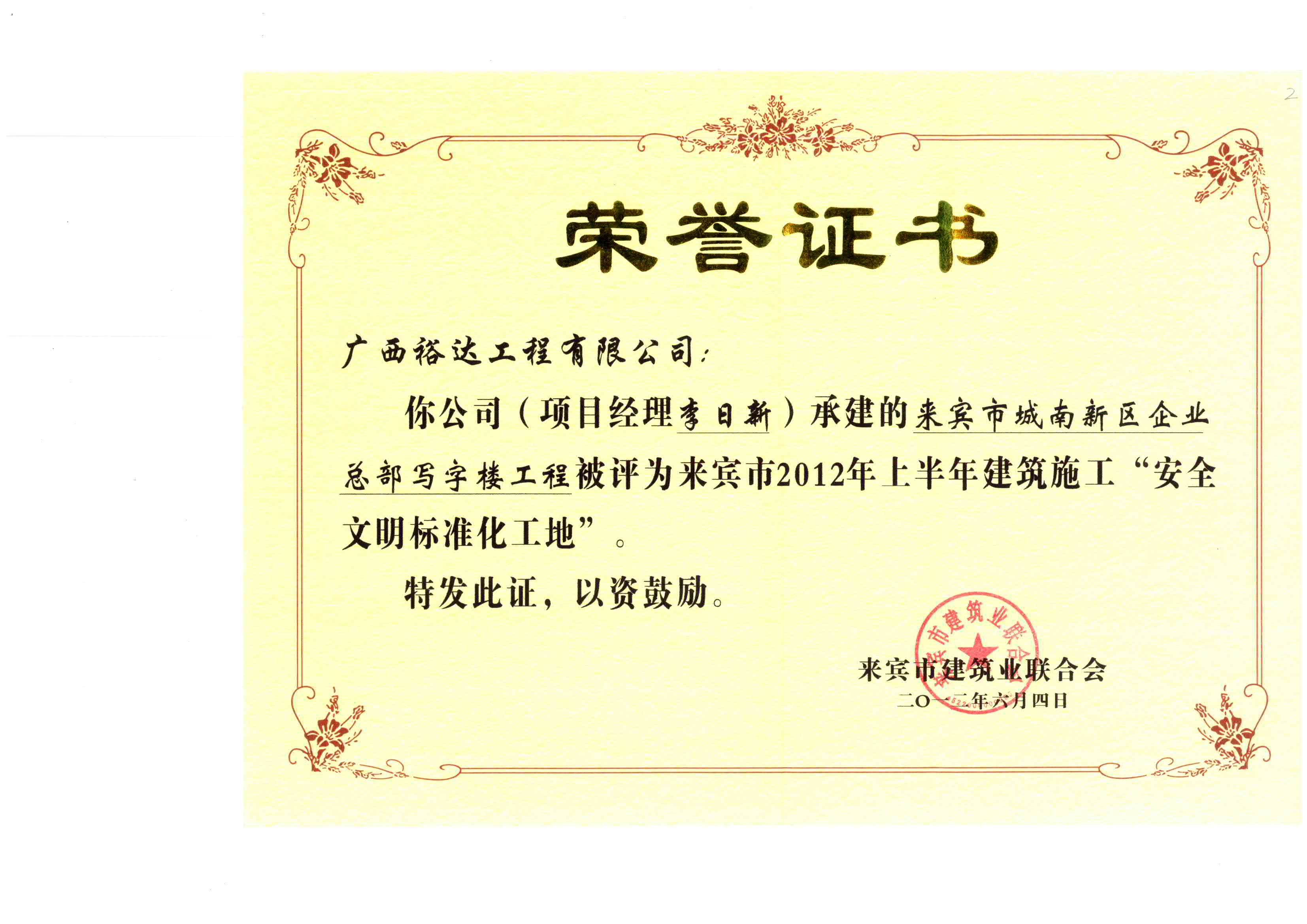 2012年来宾市第十届“红河杯”优质工程