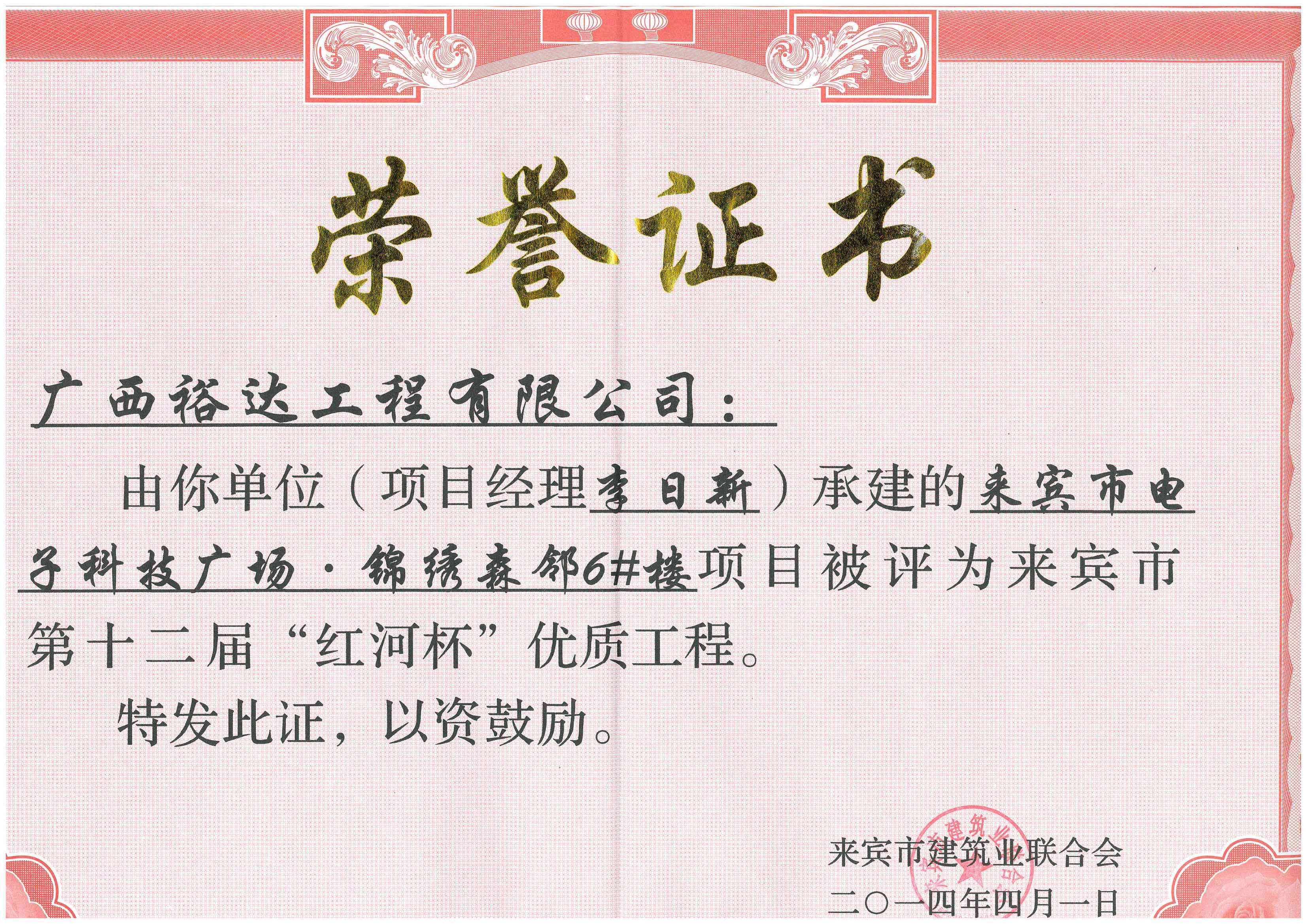 2014年第十二届“红河杯”优质工程