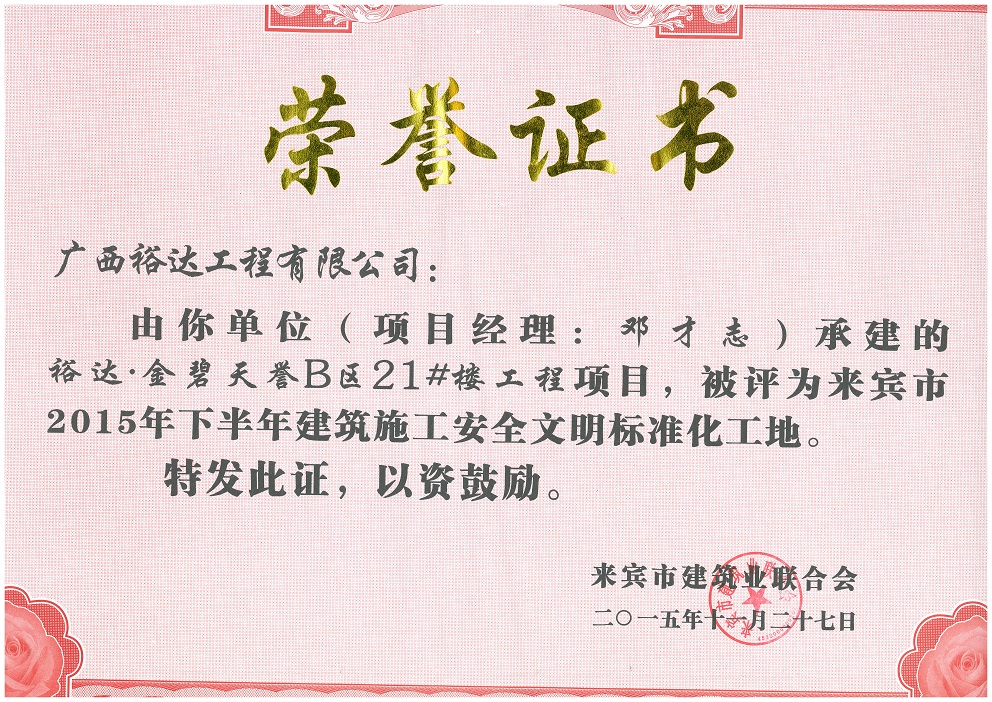 2015年下半年建筑施工安全文明标准化工地(金碧天誉B区21#楼)