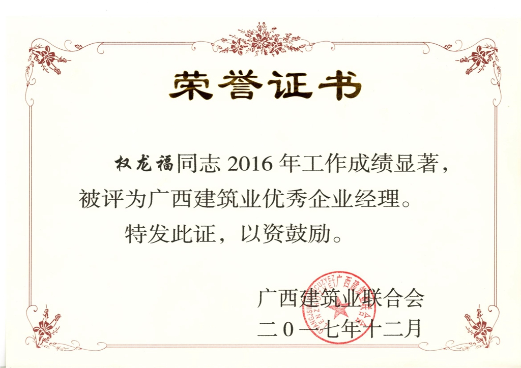 2017年广西建筑业优秀企业经理