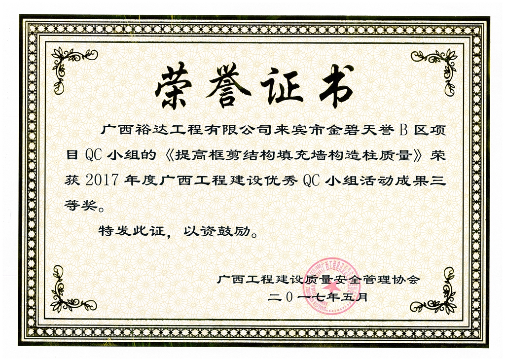 2017年广西工程建设优秀QC小组活动成果鼓励奖