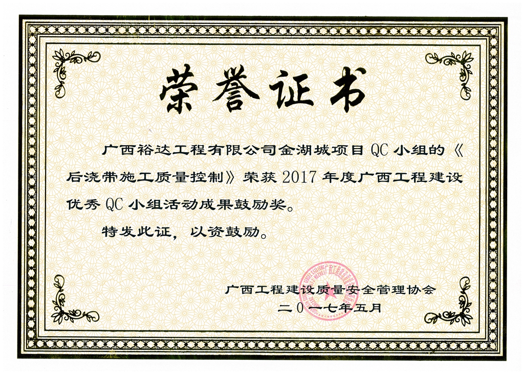 2017年广西工程建设优秀QC小组活动成果鼓励奖