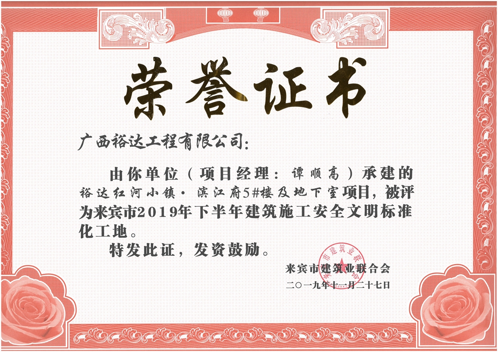 下一篇:裕达天悦城·明珠花园13#楼、15#楼及地下室项目被评为来宾市2019年下半年建筑施工安全文明标准化工地(项目经理:石才升)