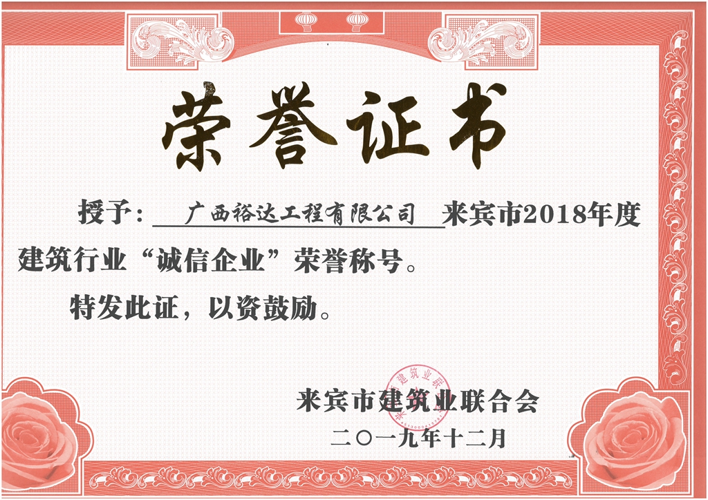 来宾市2018年度建筑行业“诚信企业”