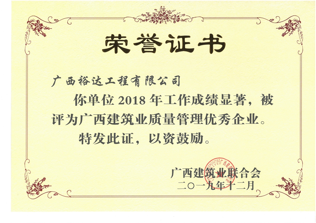 2018年广西建筑业质量管理优秀企业